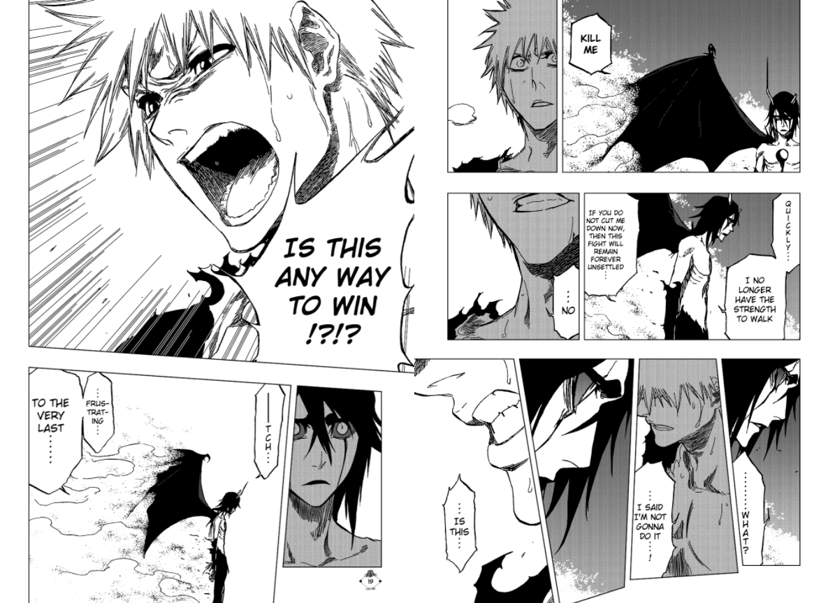 this is so fucked up. i love this so much. it's so deeply fucked up. this is the kind of thing that'll keep a hero awake at night years down the road. god, i wish we'd gotten to see more of ichigo's trauma. (that's asking far too much of a shounen series, though.)